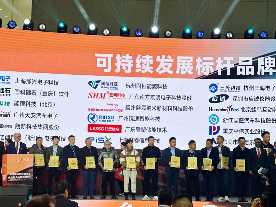 作為新能源汽車供應(yīng)鏈的優(yōu)質(zhì)企業(yè),大會主辦方為固恒能源頒發(fā)了《可持續(xù)發(fā)展標桿品牌》的獎牌