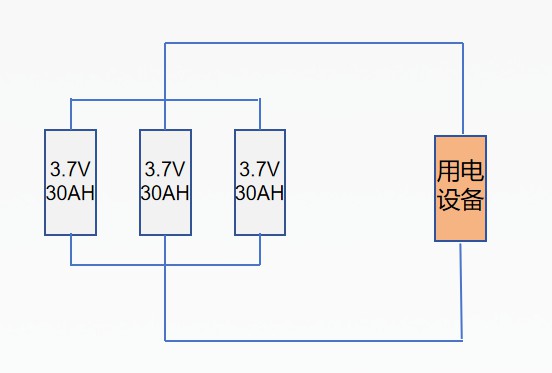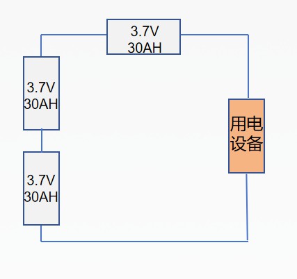 ? ? ? ?串聯(lián)增壓:多個(gè)單體電芯串聯(lián),只增加電壓,容量不變。例如:三個(gè)3.7V 30AH的電芯串聯(lián),電池組電壓:3.7*3=11.1V,容量不變30AH,該電池組為電壓為11.1V,容量為30AH。